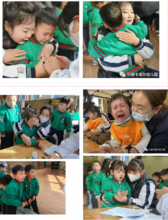 怕疼的小可愛們在老師的懷抱里也鼓起勇氣完成了體檢任務,