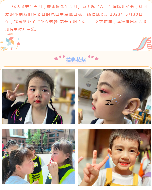 在此,我園全體教職工祝所有小朋友們六一兒童節(jié)快樂,愿你們都擁有一個美好的童年。